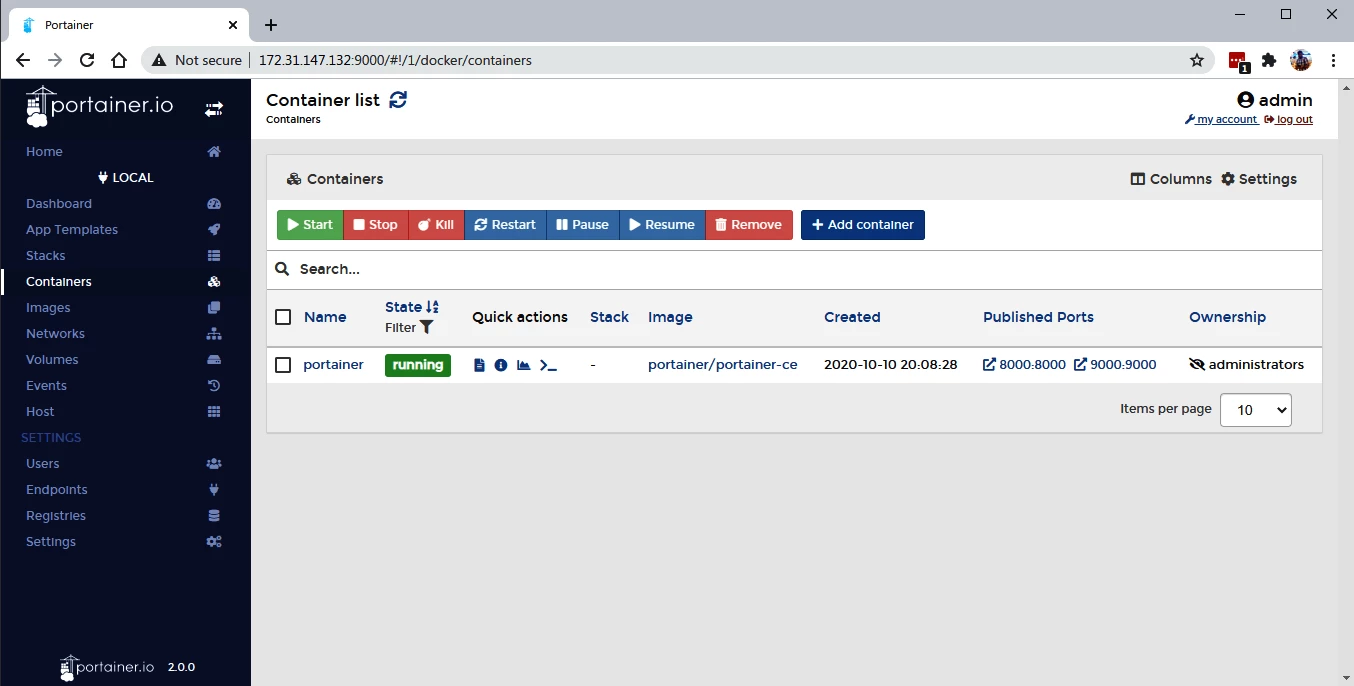 Here, Port 9000 is used for serving UI and API. Port 8000 is for running SSH tunnel between portainer instance and the agent.